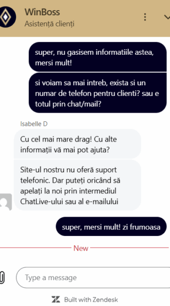 | Telefon | — | Nu există număr de telefon la Winboss. |