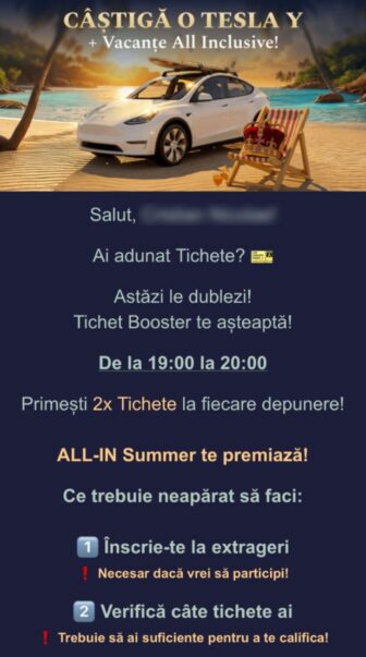 - Fiecare depunere confirmată de minimum 50 RON deblochează tichete