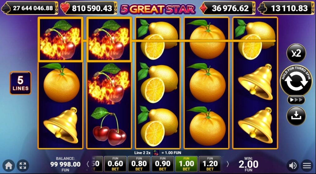Iar în acel moment când prinzi șeptarii, simți că toate rotirile de dinainte au avut sens. Acela este momentul tău de glorie. În care răsplata a venit cu adevărat. Nu juca joc demo 5 Great Star pentru caracteristici complexe. Ci pentru simplitatea lui. Care aduce aminte de sălile de joc tradiționale.