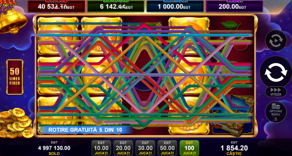 Atmosfera rămâne clasică, dar finisată modern. Iar, miza principală ține de combinația dintre rotiri gratuite cu simbol extins și runda Bell Link, unde intră în joc jackpoturi fixe și un jackpot progresiv.